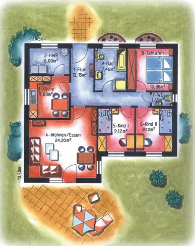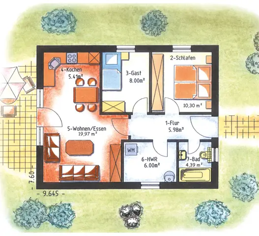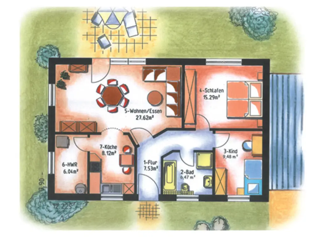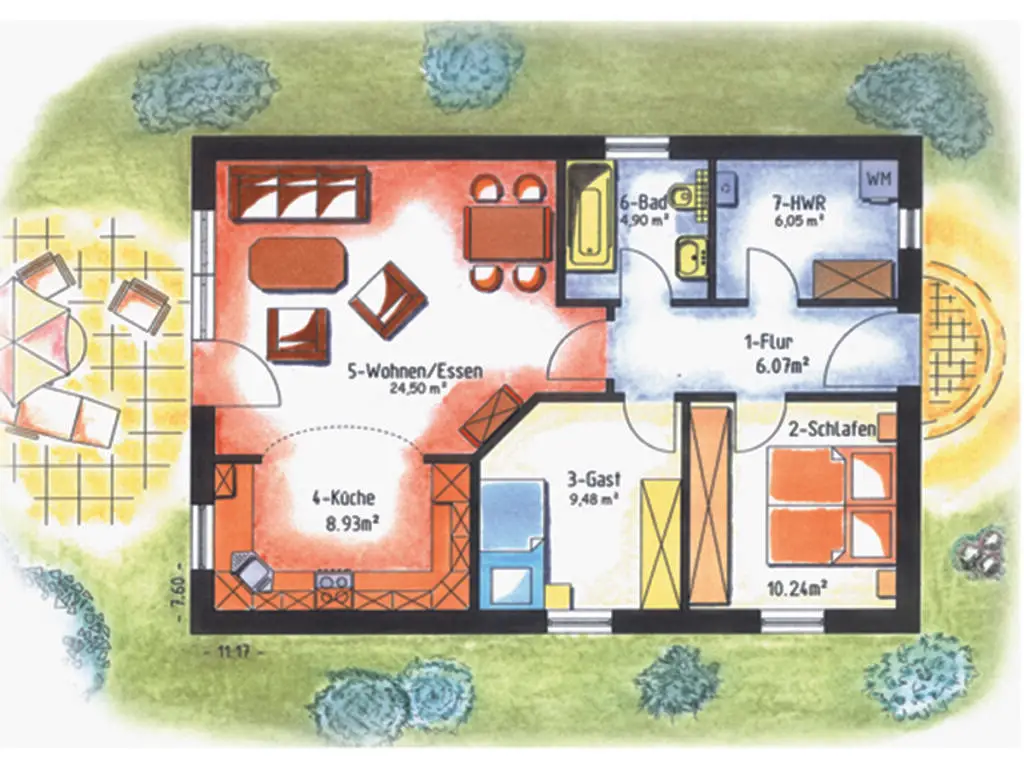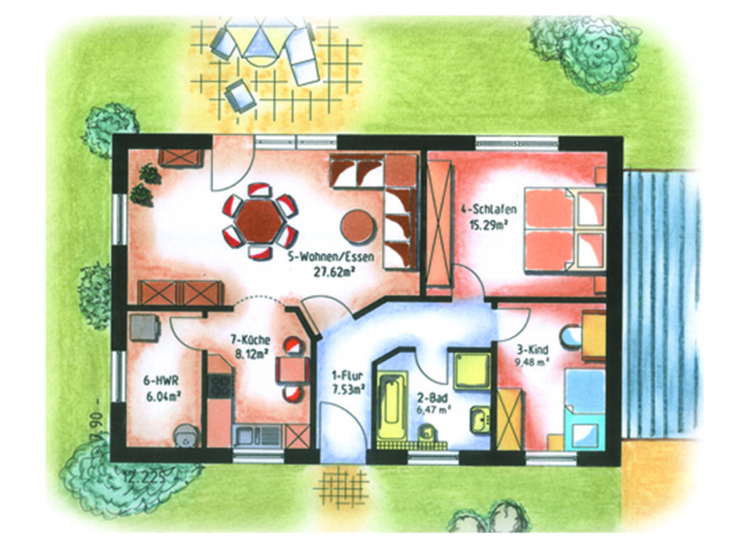 Die Ausstattung der einzelnen Häuser obliegt dabei ganz Ihrer Fantasie. Wir können verschiedene Grundrisse ganz nach Ihrem Wunsch erstellen und umsetzen.